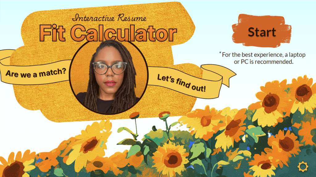 - Colorful design and fun visual elements (e.g., mixed fonts, 3D effect) chosen to reflect the casual, game-like aesthetic of the Fit Calculator while also demonstrating more advanced Canva skills